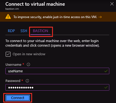 - Once the Bastion is provisioned, just navigate to the VM, you want to RDP/SSH and click Connect. There you will see an option to connect using Bastion.
