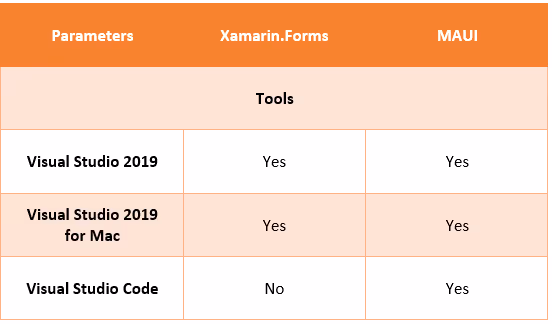 How MAUI and Xamarin.Forms Differs on Others Key Parameters: