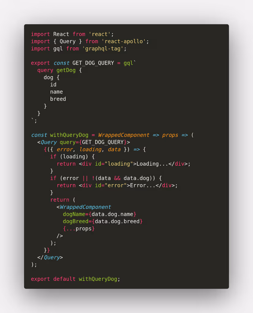 Let's take an example of the HOC with a basic query, which returns a new component: