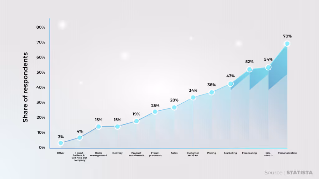 According to Statista, 70 percent of e-commerce decision-makers believed AI would help their business with personalization.